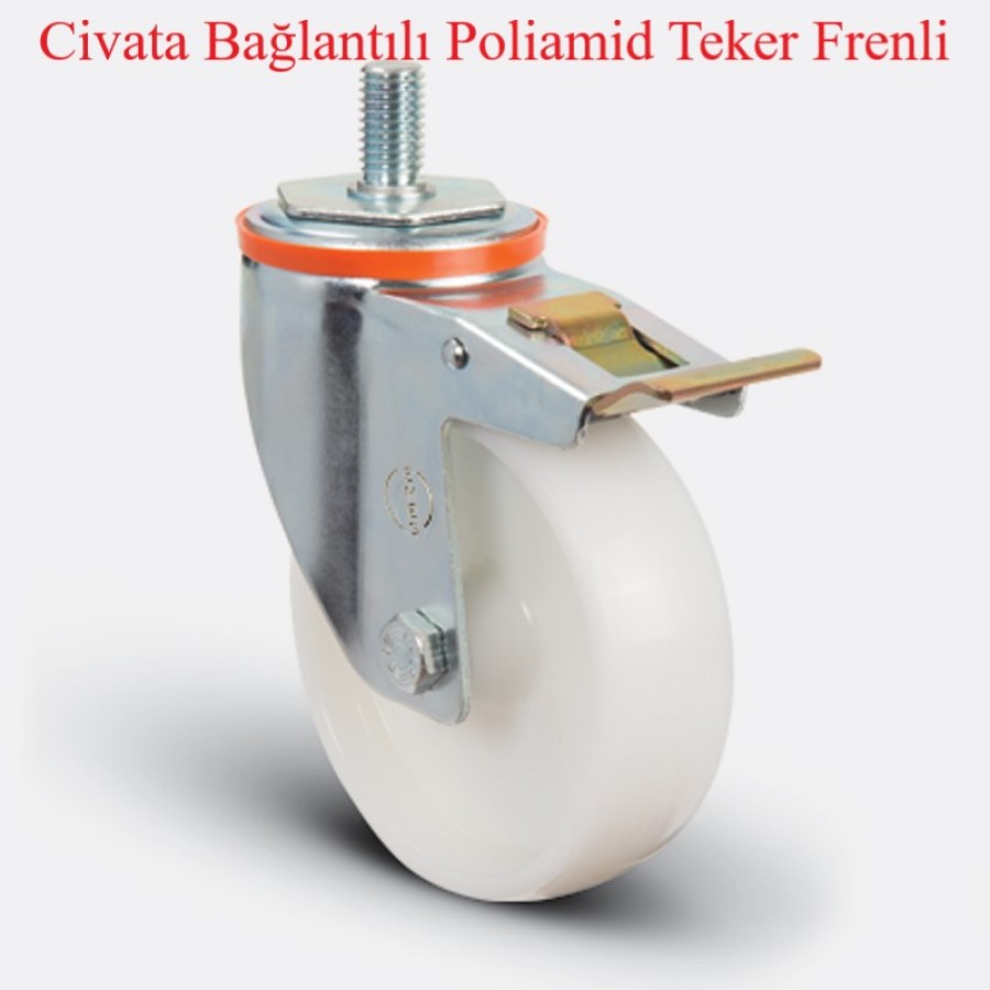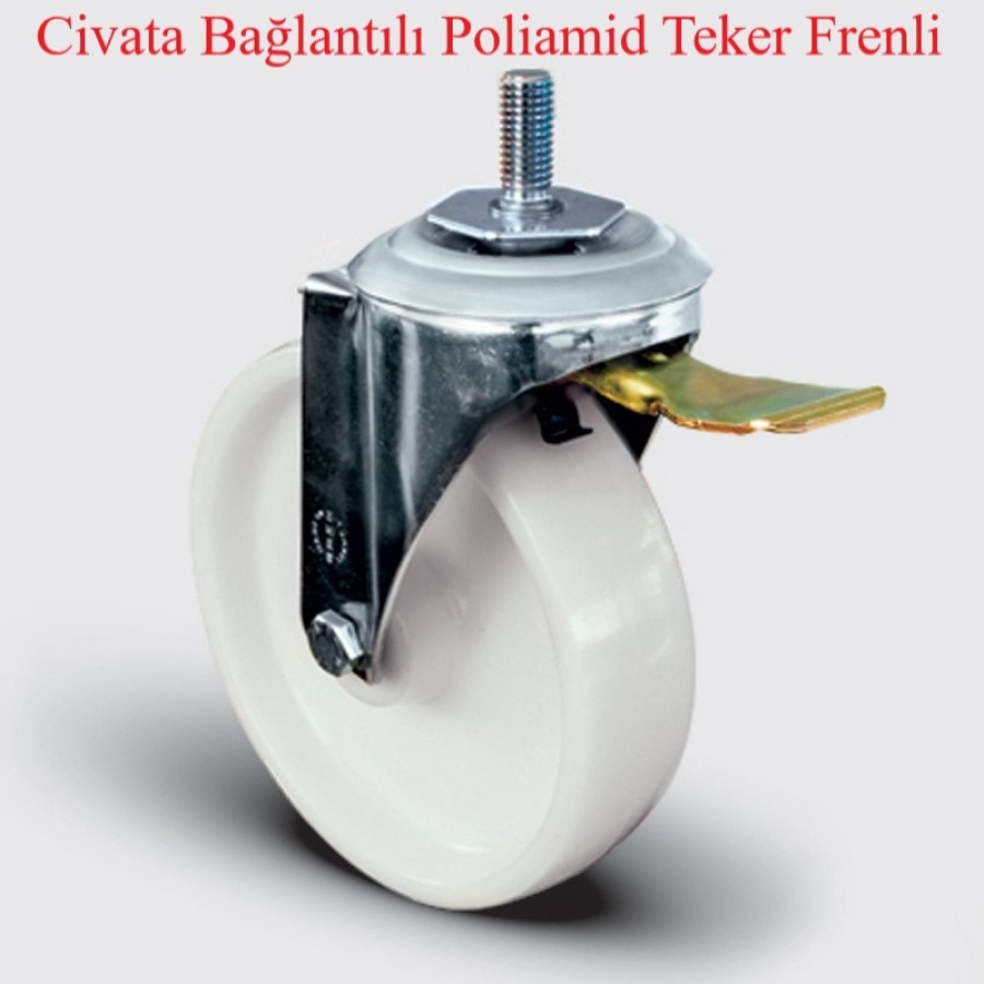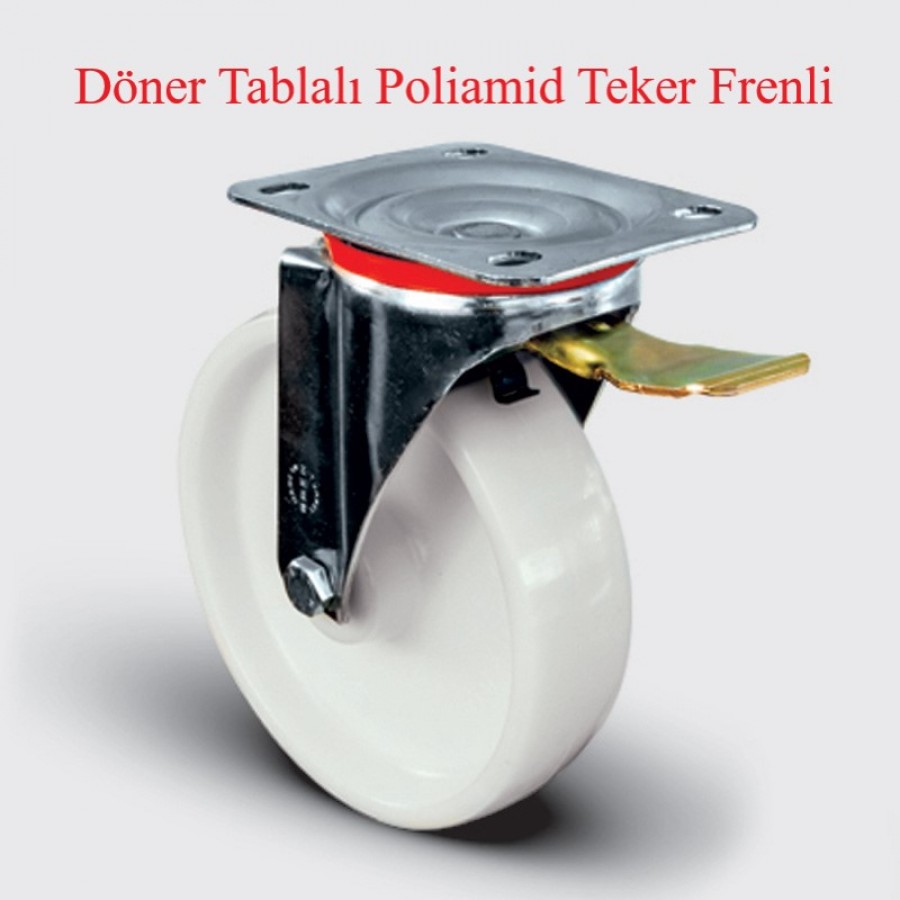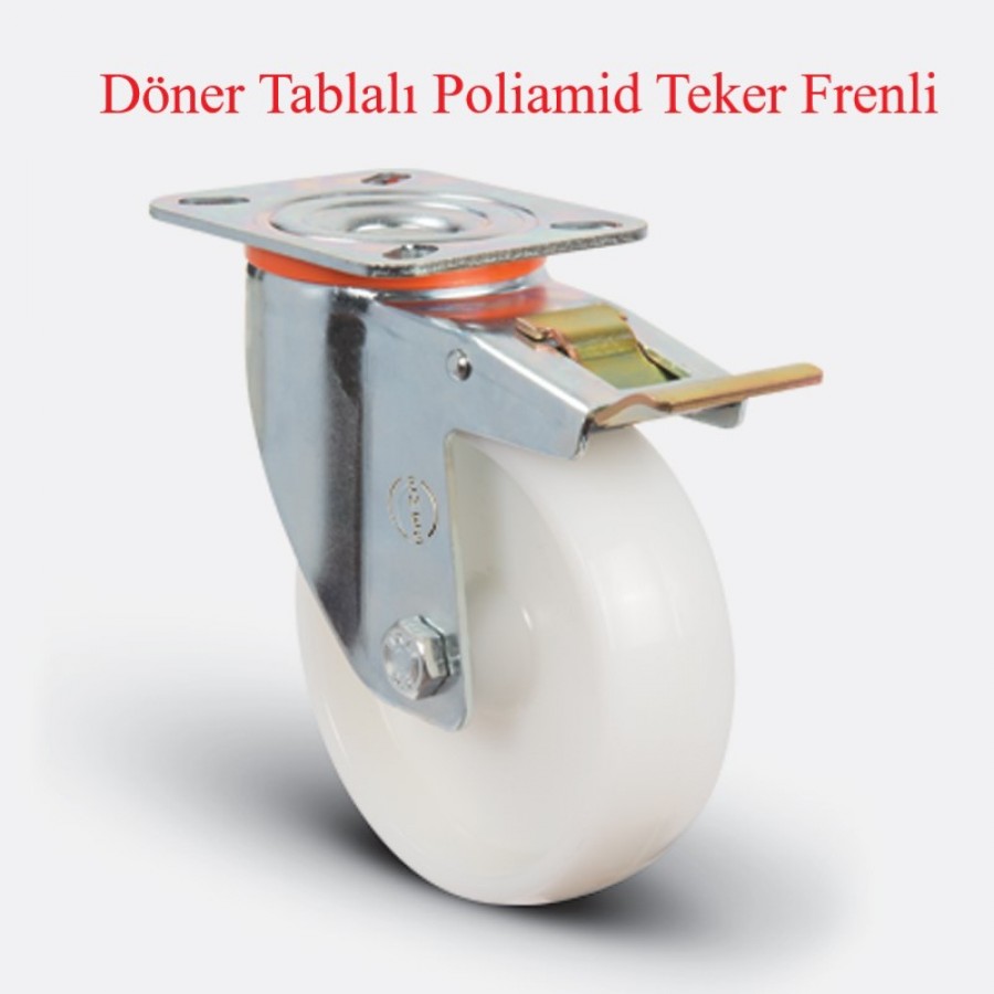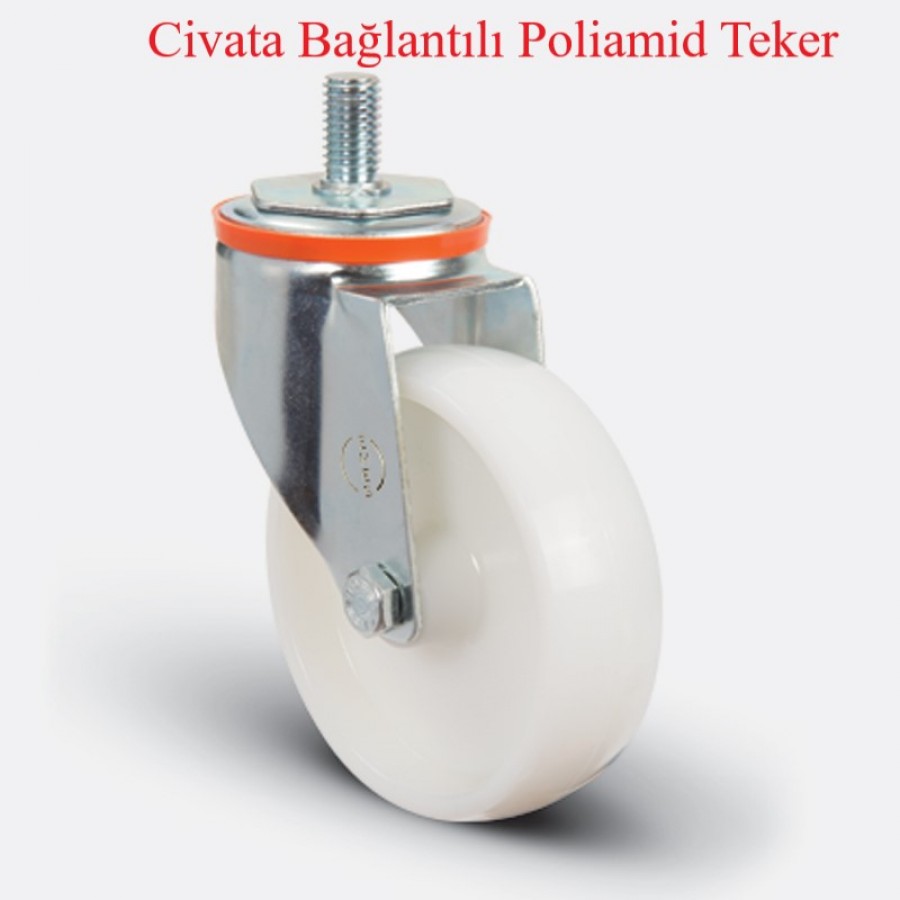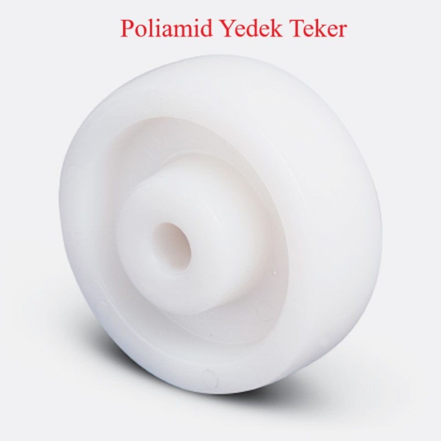 TEKER: Poliamid teker ( Naturel beyaz), jant kapaksız, kendinden burçlu yataklı.