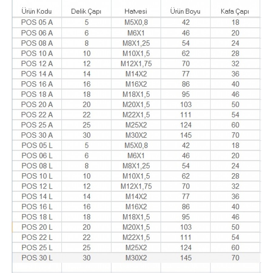 POS Rulmanlar - Rot Başı - Erkek Mafsal - Danagözü Rulman